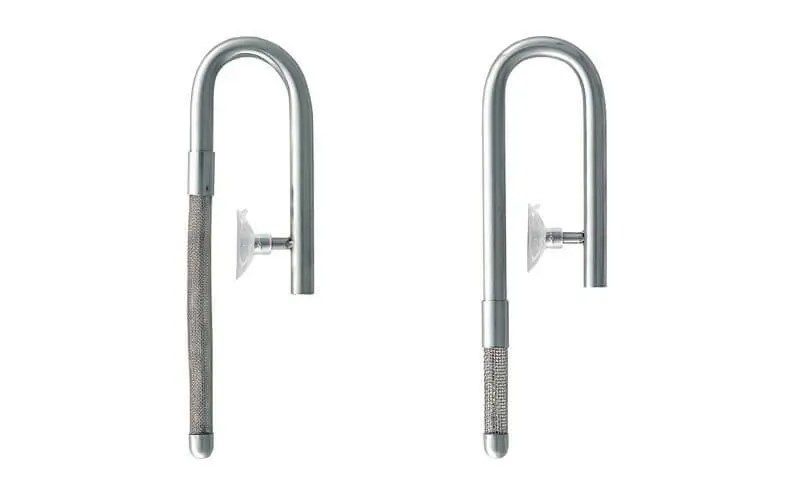 Stainless steel pipes with a detachable mesh strainer. The mesh strainer of the outflow pipe creates a gentle water stream, which is suitable to keep fish that does not like strong stream. For use with a canister filter system.