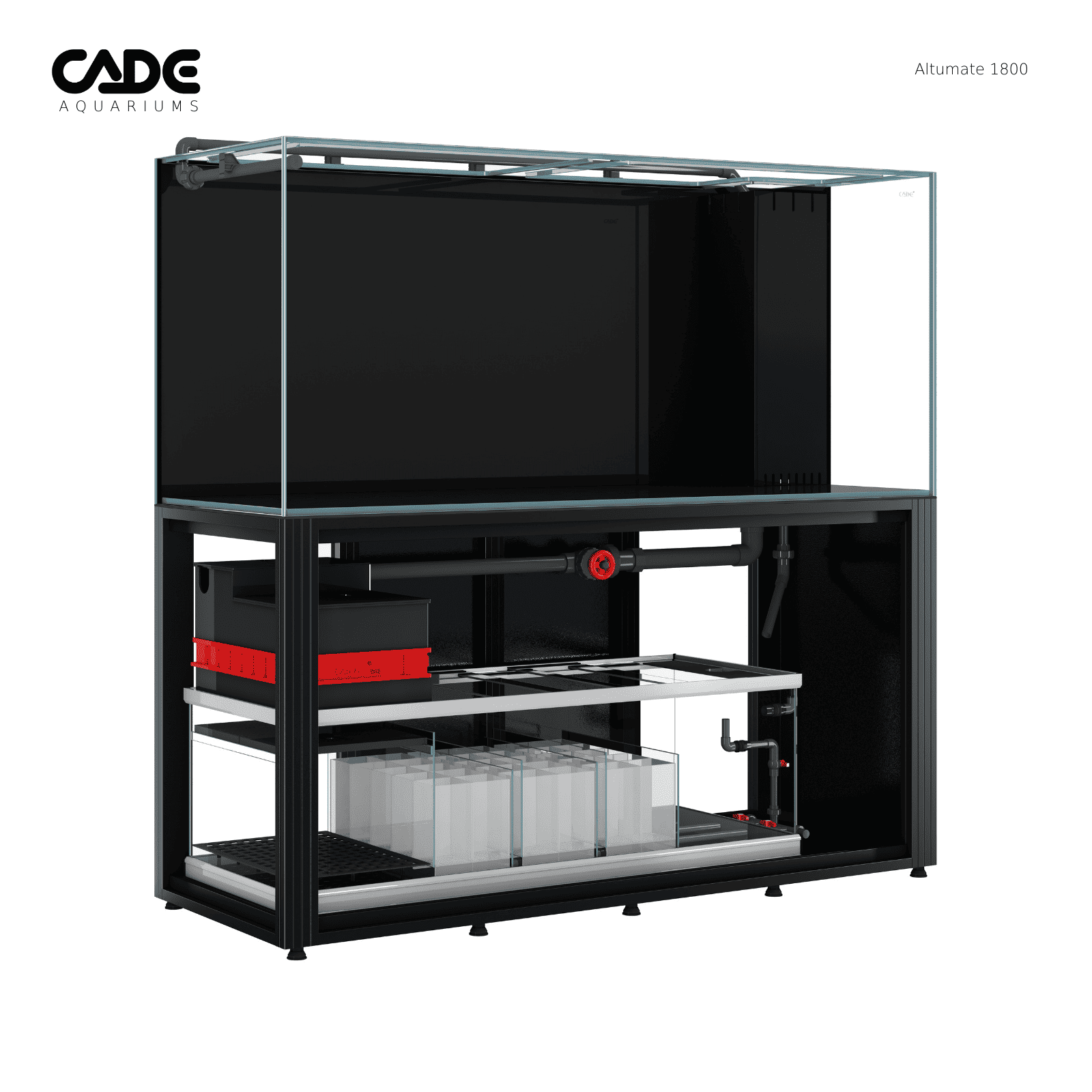 The Altumate Series is our range of extra tall sump filtered Reef/River Aquariums. This unique series originally named after the incredible Altum Angel is the ‘Altumate’ mixed application Aquarium, ideal for either a freshwater or saltwater applications. Uniquely tall in stance and extra wide in depth, all of the Aquariums in this series measure an impressive 800mm high with depths that increase incrementally with tank sizes in the range. Bracing is constructed using a single sheet of water jet cut opti-clear glass. This single sheet of glass is then siliconed perfectly in place to CADE’s industry leading standard to complete the minimalist look synonymous with CADE Aquariums