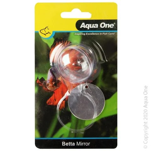 Aqua One Betta Mirror is an enrichment tool that encourages natural territorial behaviors, which aids in promoting a healthier and happier Betta. Show your Betta his reflection for just a few minutes, up to 2- 3 times a week. Features & Benefits: Provides environmental enrichment Bettas are naturally active. The Betta Mirror is the perfect toy to stay stimulated for short periods Flaring provides exercise by allowing your Betta to stretch their fins and gills as much as possible Faring is an excellent way to check the condition of your fish’s fins and scales for injury or disease Small mirror is suspended with a floating ball Suitable for: Bettas