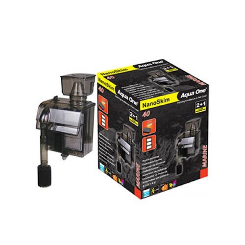 NanoSkim 40 Protein Skimmer Inc Pump 240LH Up To 40L Aqua One NanoSkim Protein Skimmers are designed to easily and effectively remove organic waste from aquarium water. The design allows the skimmer to be housed on small aquariums where no sump is used without occupying a large space within the aquarium. The NanoSkim Protein Skimmer is efficient while requiring very little power to operate! Limewood airstone creates a high density of small bubbles which creates a high surface area of interaction between air and water. Features & Benefits: Remove organic waste from your aquarium, making it clean and clear Carbon cartridge included Energy efficient Water pump and air pump included Additional Info: Item Code: 50031 Description: NanoSkim 40 Protein Skimmer Inc Pump Dimensions: 12 x 11.5 x 20cm For Aquariums up to: 40L Max Flow Rate: 240L/hr Voltage: 220-240V Wattage: 4.4W Suitable for: Marine & Coral Reef 2 + 1 Year Guarantee