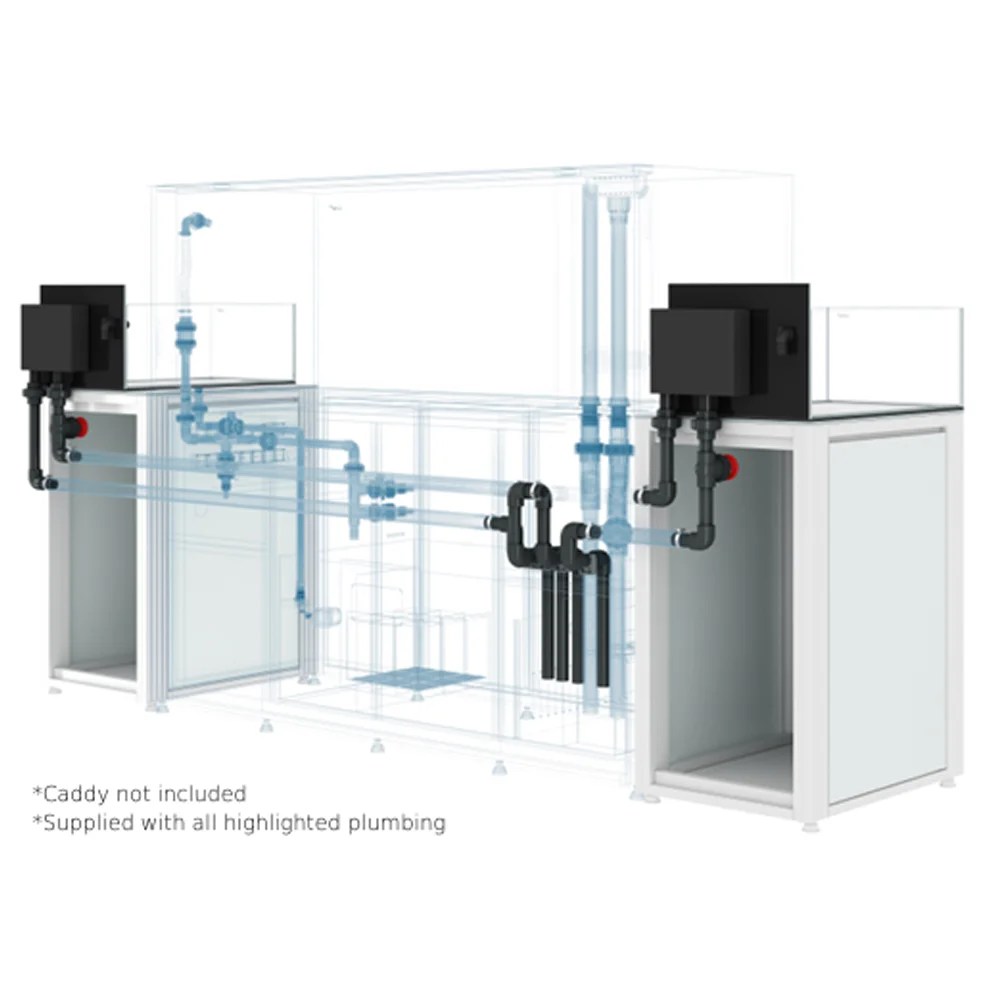 There are several options on how a Reef X can be configured. It can be used on your own cabinet or on a CADE Caddy. It is supplied with the tank (c/w foam pad), jump net and plumbing, minus the hose connecting the Reef X to the sump drain pipes.