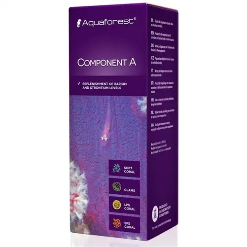 Component A is designed to correct minor deficiencies of strontium and barium in marine aquariums. The unique formula was created based on the same strontium and barium ratio as natural seawater. Skimmer and filtration media tend to remove trace elements from the water of closed aquarium system, making micro nutrients supplementation necessary. Due to the perfect balance of elements Component A allows creating conditions almost identical with natural sea water. Strontium supports the formation of coral skeletal tissue and improves the absorption of calcium. It also supports the growth of soft corals. Safe concentration of the preparation minimizes the chance of micro nutrients overdose, therefore Component A can also be used by novice aquarists.