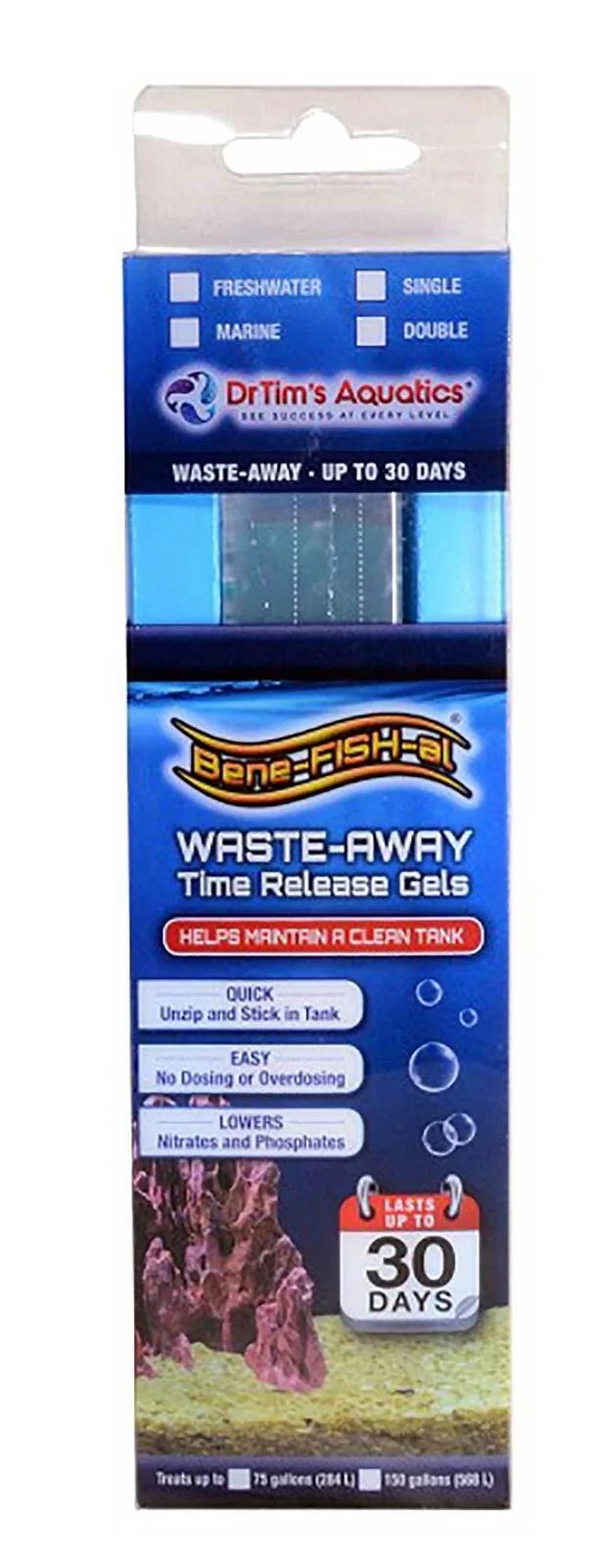 Dr Tims Waste Away Gel Lowers Phosphate and Nitrate. Waste-Away, a 100% natural, beneficial-bacteria based product, works to quickly find, break down and remove these wastes.