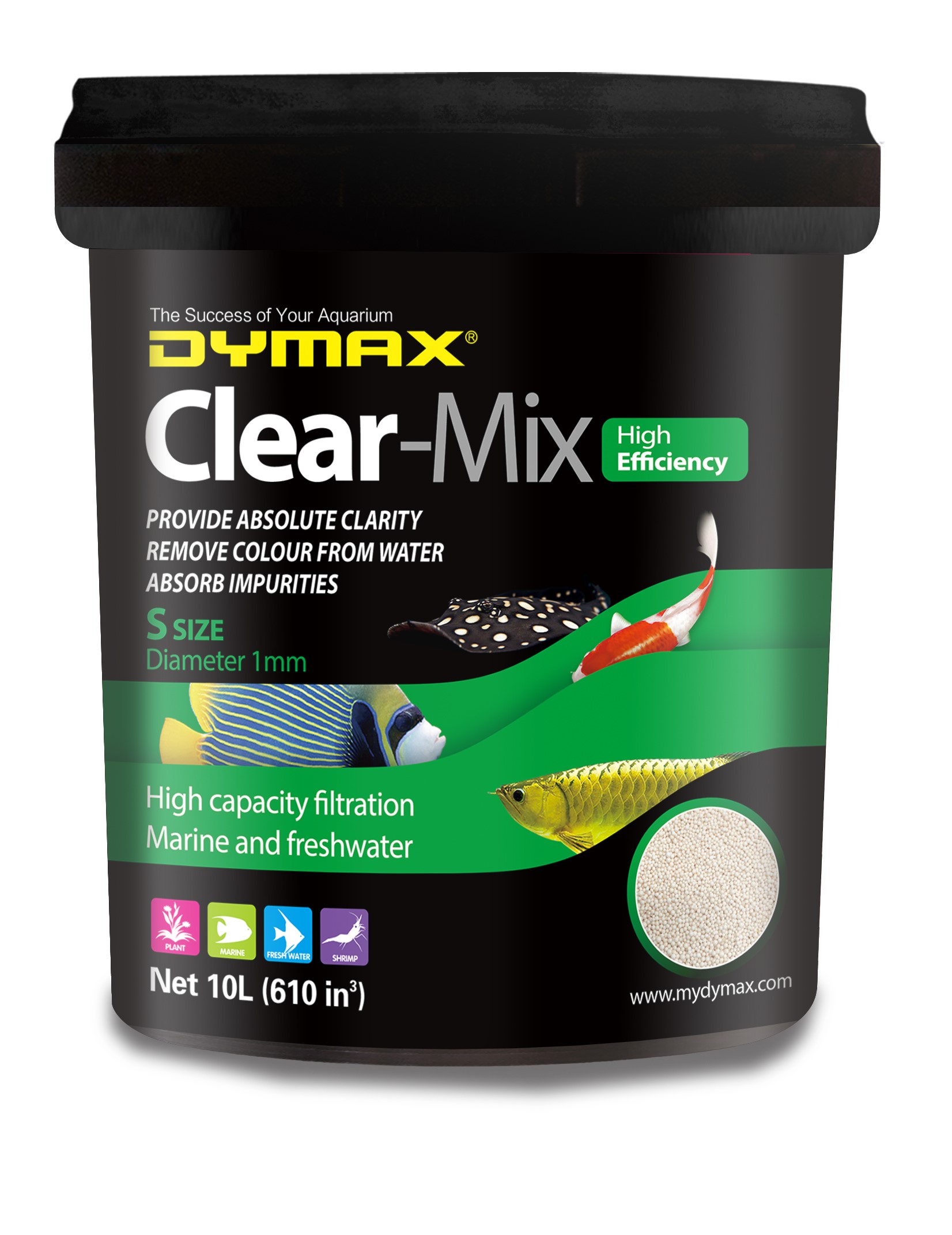 Dymax Clear-Mix is a unique macro-porous synthetic polymer absorbent that removes soluble and insoluble impurities and colouration from water due to the presence of drift wood or feeding. It achieves this at a rate and capacity exceeding 5 times that of any other filtration products in the market. This product controls ammonia; nitrites and nitrates by removing nitrogenous organic waste that would otherwise release these harmful components. Clear-Mix causes minimum impact on trace elements while significantly raises redox; polishes water and achieves optimum clarity. When the product is exhausted the pellets will darken progressively and can be easily renewed by treating with bleach. Clear-Mix is formulated and designed for both freshwater and marine applications. Rinse before use. Each 500ml treats up to 2000L for up to 6 months.