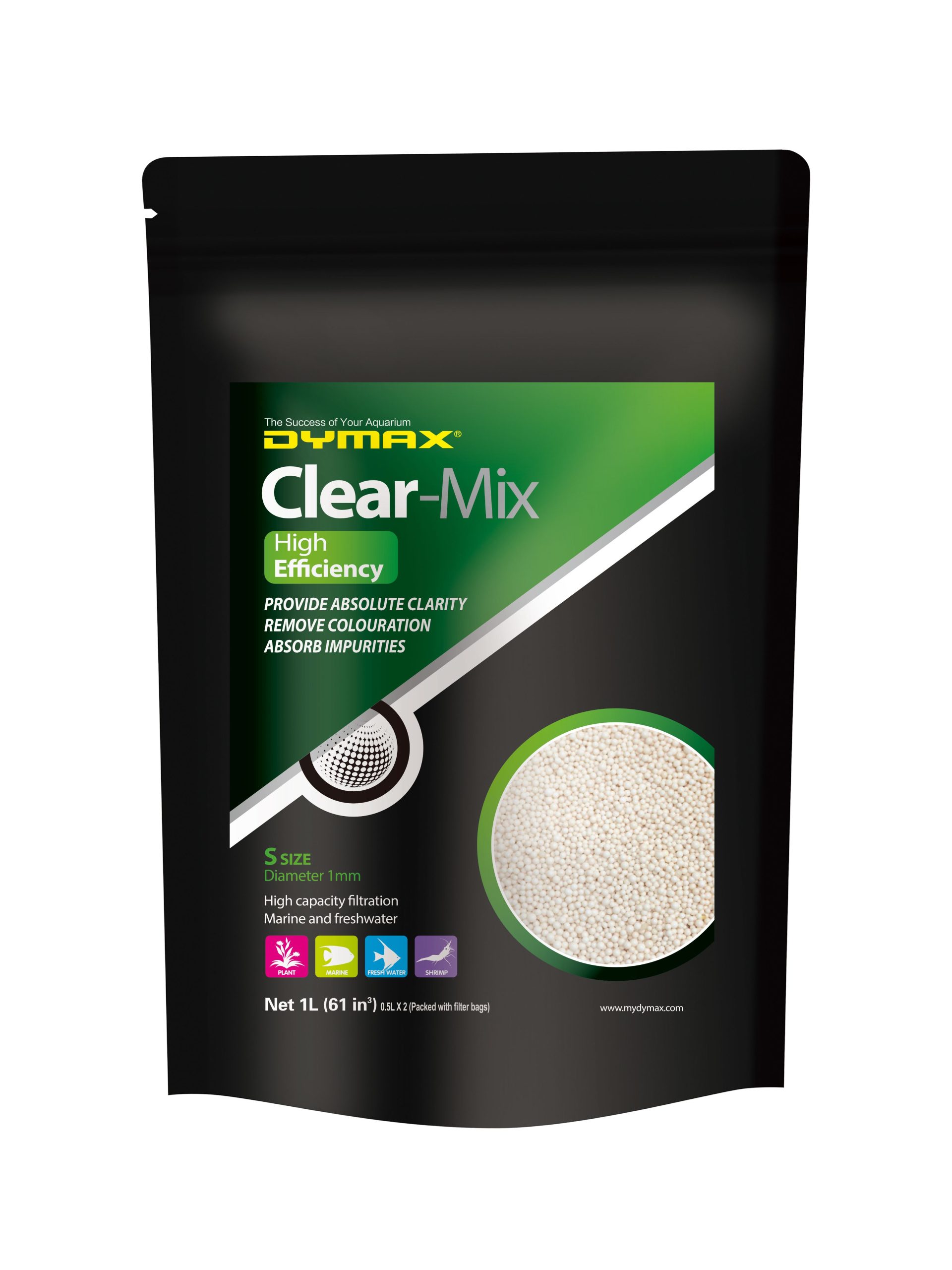 Dymax Clear-Mix is a unique macro-porous synthetic polymer absorbent that removes soluble and insoluble impurities and colouration from water due to the presence of drift wood or feeding. It achieves this at a rate and capacity exceeding 5 times that of any other filtration products in the market. This product controls ammonia; nitrites and nitrates by removing nitrogenous organic waste that would otherwise release these harmful components. Clear-Mix causes minimum impact on trace elements while significantly raises redox; polishes water and achieves optimum clarity. When the product is exhausted the pellets will darken progressively and can be easily renewed by treating with bleach. Clear-Mix is formulated and designed for both freshwater and marine applications. Rinse before use. Filter bag is included in the product. Each 500ml treats up to 2000L for up to 6 months.