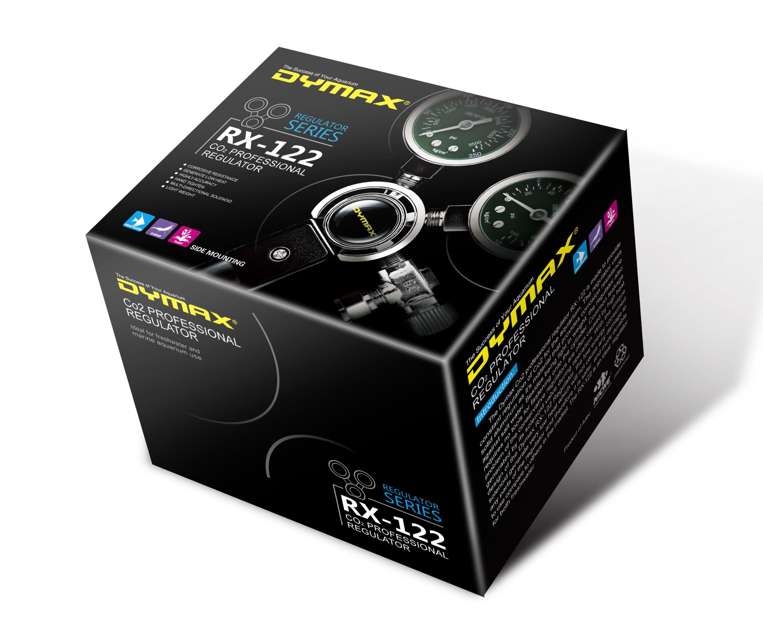 Dymax CO2 Professional Regulator RX-122 is designed to provide a constant regulation of CO2 for aquarium use. The regulator is made of solid aluminium material that is light weight and corrosive resistant against salt water. The RX-122 has a self-fasten ‘O’ ring feature that requires no tools for fastening onto the CO2 cylinder. With its new technology and design Dymax RX-122 regulator is designed with a low energy solenoid valve that generates extremely low heat that causes no damage to any parts of the regulator even after long hours of operation. It is safer and more durable to use compared to other similar products in the market. Dymax CO2 Professional Regulator RX-122 is an ideal product for both freshwater and marine aquarium.