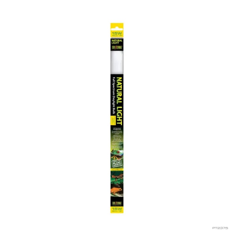 The Exo Terra Natural Light is a full spectrum daylight bulb, recommended as general light source for all terrarium types. As a result of the vivid wavelengths of light provided by the Natural Light, reptiles will experience and perceive colours from their environment more naturally. The Exo Terra Natural Light will help to improve the living conditions and physiological wellbeing of your reptiles. The specific wavelengths make this bulb suitable for planted terrariums and for animals with lower UV requirements, such as snakes, amphibians (frogs, toads and salamanders) and nocturnal animals.