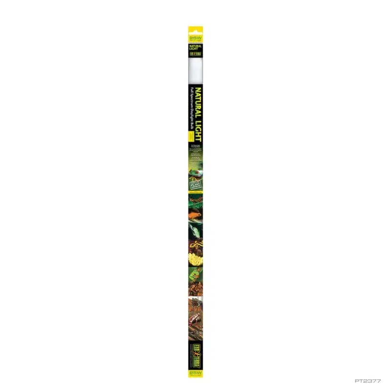 The Exo Terra Natural Light is a full spectrum daylight bulb, recommended as general light source for all terrarium types. As a result of the vivid wavelengths of light provided by the Natural Light, reptiles will experience and perceive colours from their environment more naturally. The Exo Terra Natural Light will help to improve the living conditions and physiological wellbeing of your reptiles. The specific wavelengths make this bulb suitable for planted terrariums and for animals with lower UV requirements, such as snakes, amphibians (frogs, toads and salamanders) and nocturnal animals.