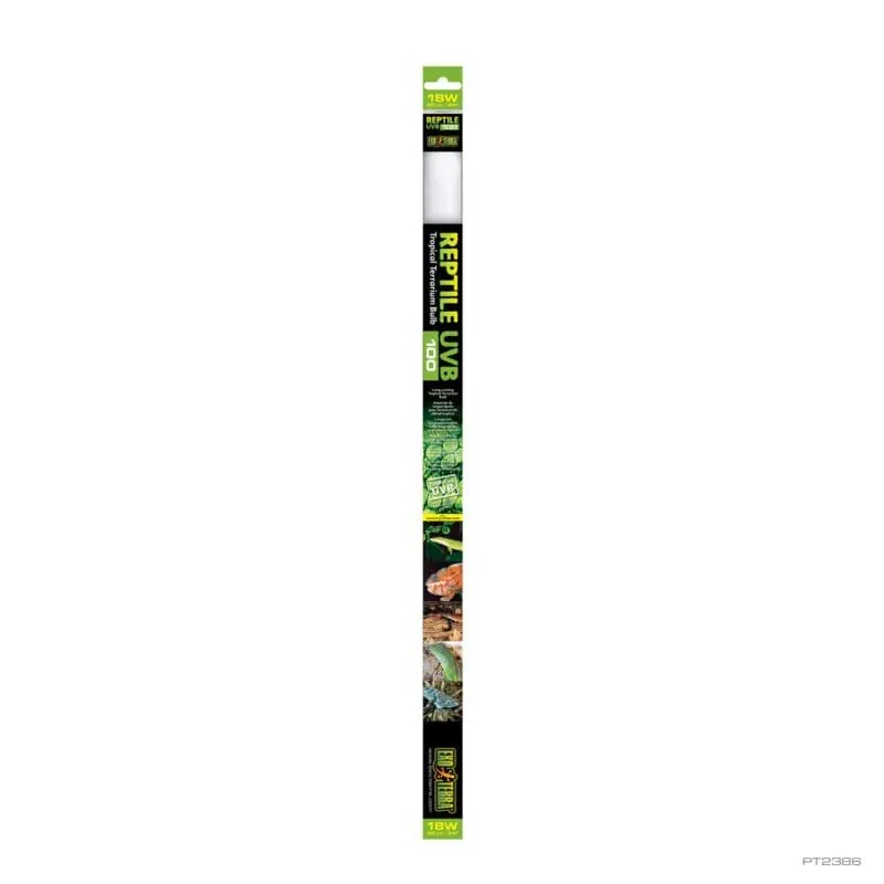 The Exo Terra Reptile UVB100 emits optimal levels of UVB, similar to that of shady environments such as rain forests or other tropical locations. Reptiles living in these habitats receive moderate UV radiation due to climatological conditions (fairly high humidity, changes in weather, etc) that prevent unfiltered sunlight from reaching the reptile’s basking site. The optimal Vitamin D3 yield index ensures vitamin D3 photosynthesis to aid calcium absorption and prevent metabolic diseases.