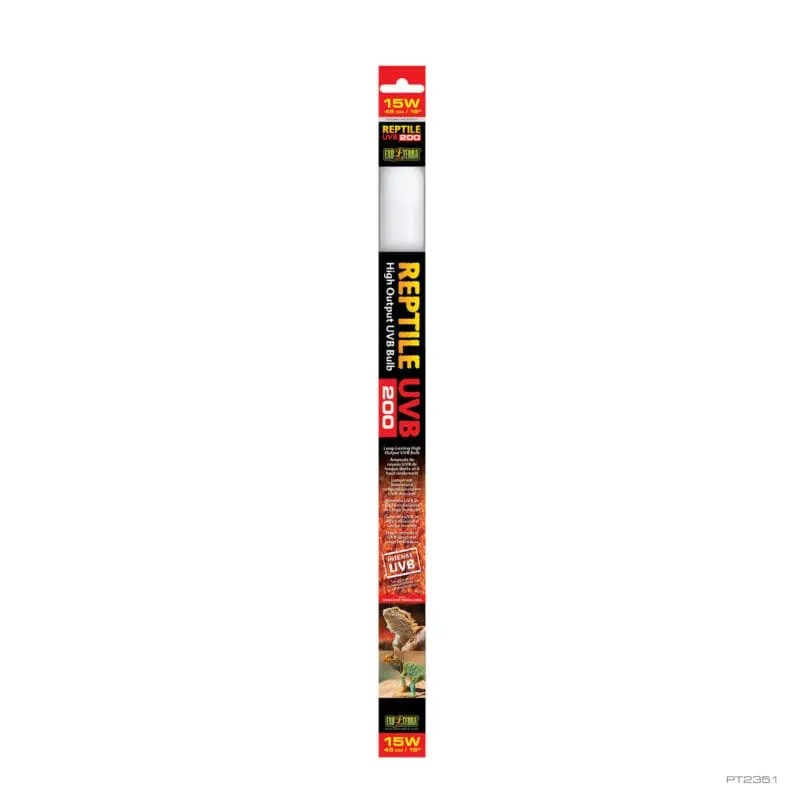 The Exo Terra Reptile UVB200 emits the ideal UVB spectrum for optimal Vitamin D3 photosynthesis. The Reptile UVB200 Bulb is especially designed to simulate conditions for reptiles with very high UV requirements, like diurnal reptiles from desert environments. These areas receive direct unfiltered sunlight with high levels of UVB. The significantly high Vitamin D3 yield index results in increased vitamin D3 photosynthesis to aid calcium absorption and prevent metabolic diseases. The extended UVB penetration makes this bulb the ideal choice for taller terrariums or terrariums with denser screens.