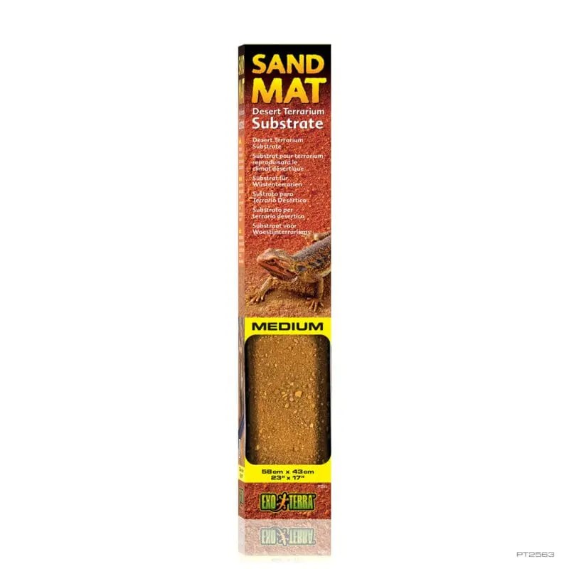 The Exo Terra Sand Mat has a natural desert appearance and can be applied as a safe & hygienic substrate substitute for your reptiles. The Sand Mat allows you to create a desert-like environment with a minimum of bacterial build up. Unlike loose sand or soil, the Sand Mat cannot be accidentally ingested. The texture of the Sand Mat enables your reptile to have a firm grip on the substrate, increasing your reptile’s sense of safety and comfort. Sturdy, hygienic and easily removable, the Exo Terra Sand Mat is easy to use and can be cut to fit any terrarium size. Simply rinse clean when soiled or replace as necessary.
