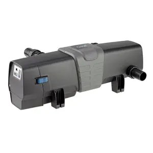 Maximum effectiveness thanks to a perfect combination of flow rate and radiation intensity. This UVC clarifier saves illuminant costs due to a 50% longer service life (12,000 hours) and lowers energy costs by up to 50% for the same cleaning performance, because the radiation times are regulated fully automatically. Concentrated UVC power clarifies ponds up to 240 m3.