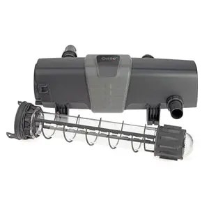 Maximum effectiveness thanks to a perfect combination of flow rate and radiation intensity. This UVC clarifier saves illuminant costs due to a 50% longer service life (12,000 hours) and lowers energy costs by up to 50% for the same cleaning performance, because the radiation times are regulated fully automatically. Concentrated UVC power clarifies ponds up to 240 m3.