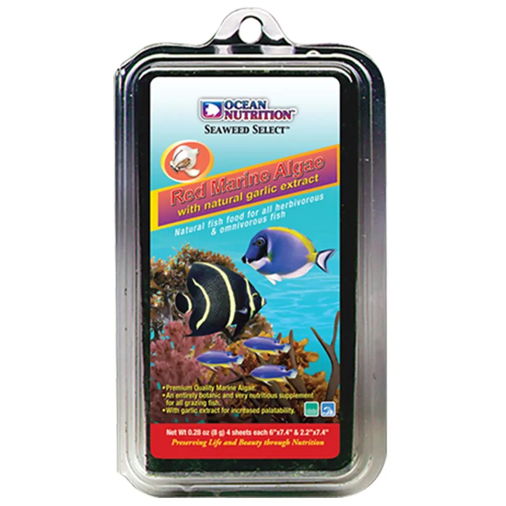 Tear off a piece of seaweed approximately two by three inches (5 x 7 cm) for the average 50 gallon (200 l) community tank and place it in the aquarium using Feeding Frenzy™ Seaweed Clips, or attach it to an aquarium rock using a rubber band. Folding the seaweed piece prior to the placement is recommended. Allow the fish to graze at leisure. Any large seaweed pieces that break loose and float to the surface should be reattached. Remove any uneaten seaweed after 24 hours. This product should be used as a supplement to other food sources. We strongly recommend Frozen Formula Foods™, Formula Flake Foods™ or the soft and moist pellets from Ocean Nutrition™.