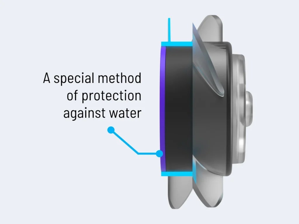 - double sealing of the parts that come into contact with water significantly reduces the risk of rusting