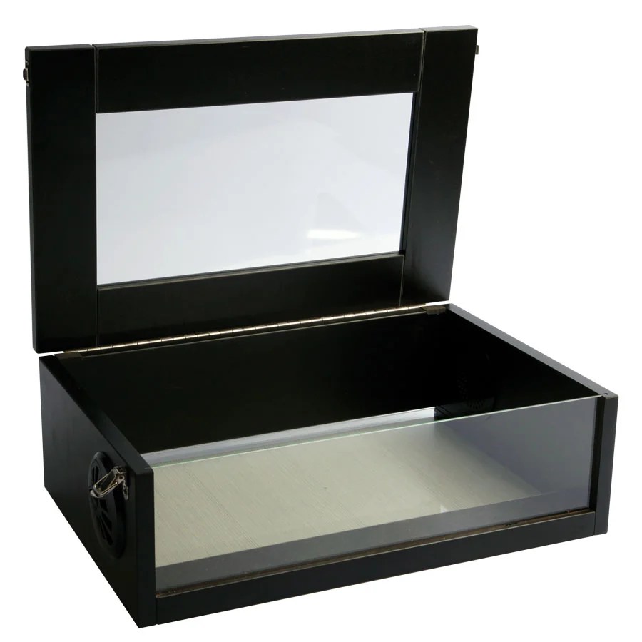 - Front and top tempered glass panels for viewing