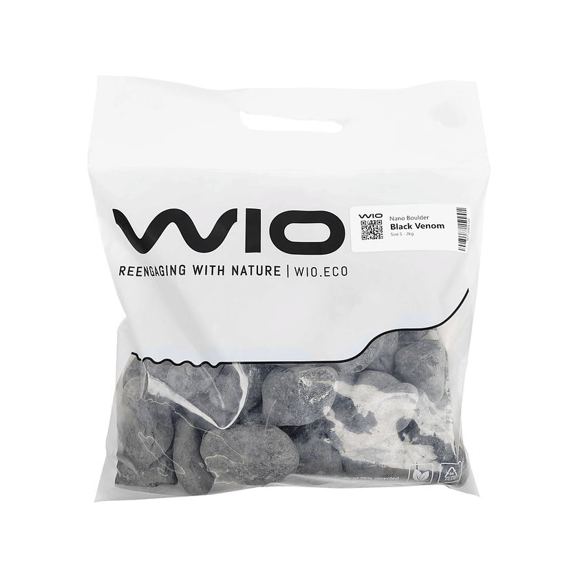 Black Venom Nano Boulders (2kg) – These stunning and vibrant pitch-black rocks are perfect for creating intricate designs in smaller aquariums or terrariums. Their smooth, black-glazed surface and maze-like texture make them high-impact rocks that beautifully complement plants and mosses.