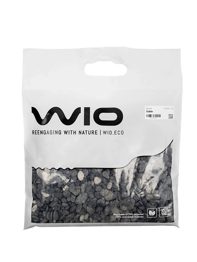 Sable Gravel is a beautiful substrate that showcases a range of dark shades, from grey and black to brown and even ochre reds. The pebbles are small, soft, and smooth, making it perfect for aquariums and terrariums. It can be used as a main substrate in stream or river biotopes, or as a detailing element in aquascapes. When wet, the dark ambience of the gravel contrasts strikingly with green plants and is perfect for tropical terrariums. Available in 2kg bag.